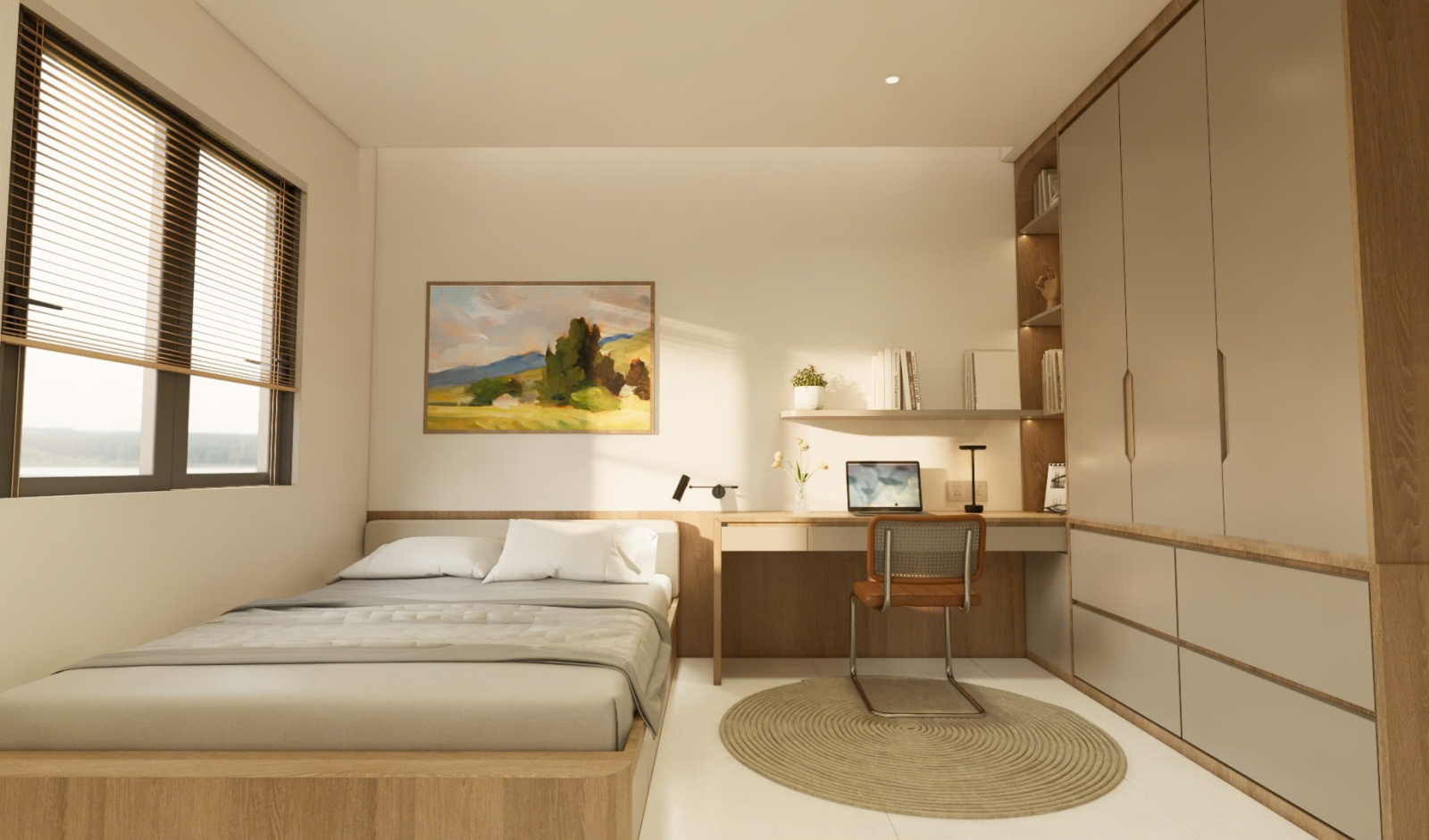 Trong xu hướng thiết kế hiện nay, thi công nội thất phòng ngủ hiện đại với tone gỗ sáng đang được nhiều gia chủ lựa chọn bởi sự ấm cúng, sang trọng nhưng vẫn giữ được nét tối giản tinh tế. Công trình do Nội Thất DC thực hiện mang đến không gian nghỉ ngơi lý tưởng, hài hòa giữa thẩm mỹ và công năng sử dụng.